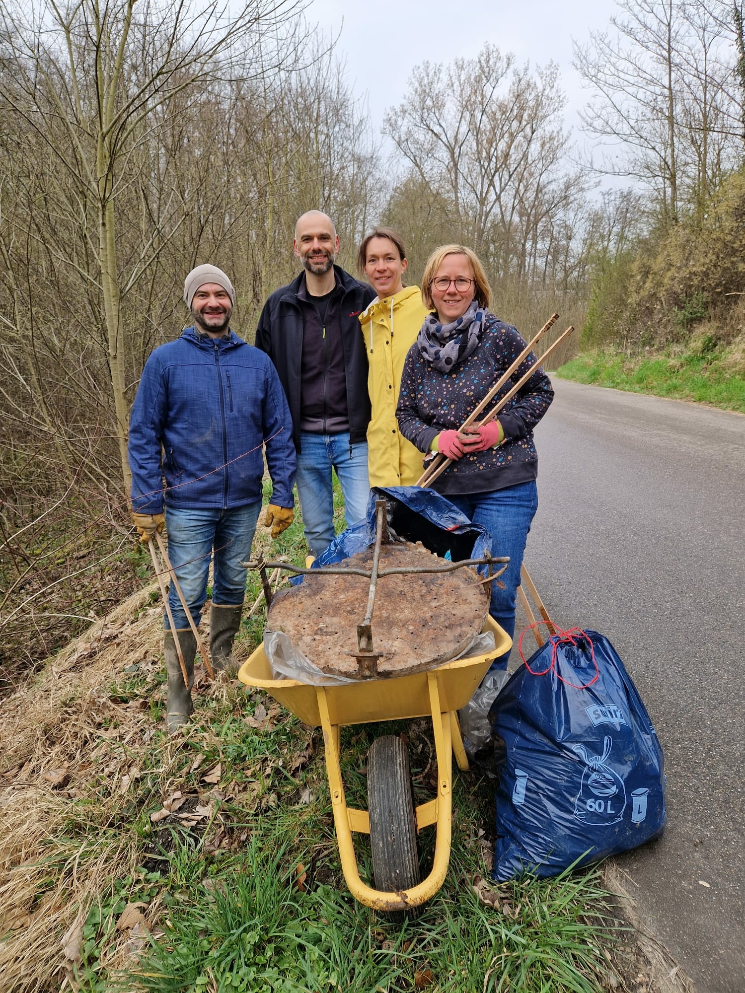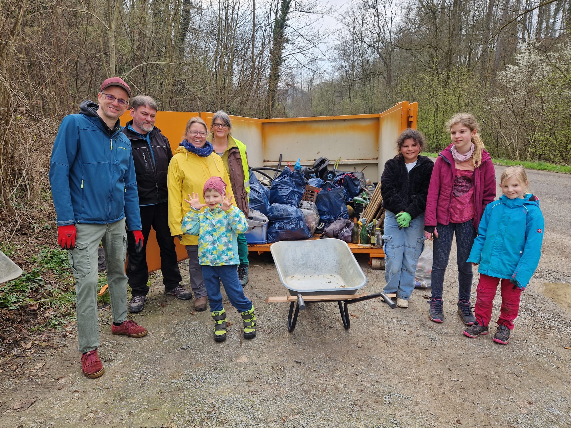 Auch im Eichgraben wurde tatkräftig angepackt. Der Bürgerverein Hörnle & Eichgraben hatte zur „Eichgraben-Putzete“ eingeladen. Neben Verpackungsmüll wurden auch sperrige Gegenstände, wie ein Gullideckel, eine Europalette und ein Rutschauto aus dem unwegsamem Gelände gezogen.