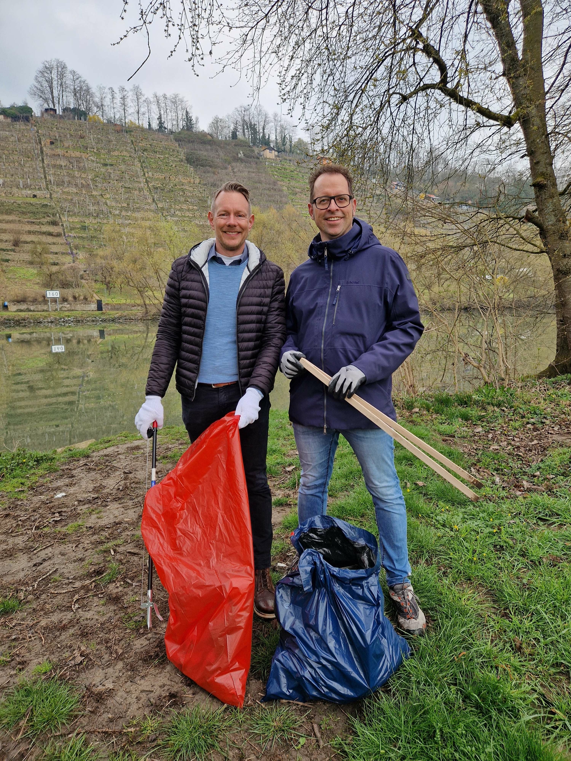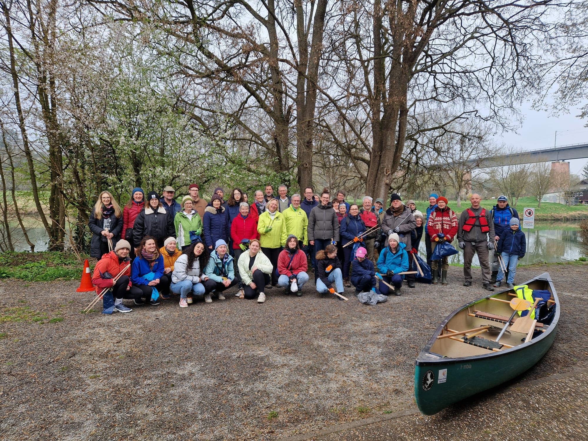 Parallel dazu engagierten sich zahlreiche Freiwillige beim interkommunalen Neckar-CleanUp gemeinsam mit der Stadt Ludwigsburg. Entlang des Flusses wurde mit Unterstützung des Kanuverleihs „Die Zugvögel“ sowie dem Kanu-Club Marbach jede Menge Unrat, wie eine Radkappe, geborgen. Auch der Bürgermeister von Marbach Jan Trost und Ludwigsburgs zuständiger Bürgermeister Sebastian Mannl unterstützten die Aktion.