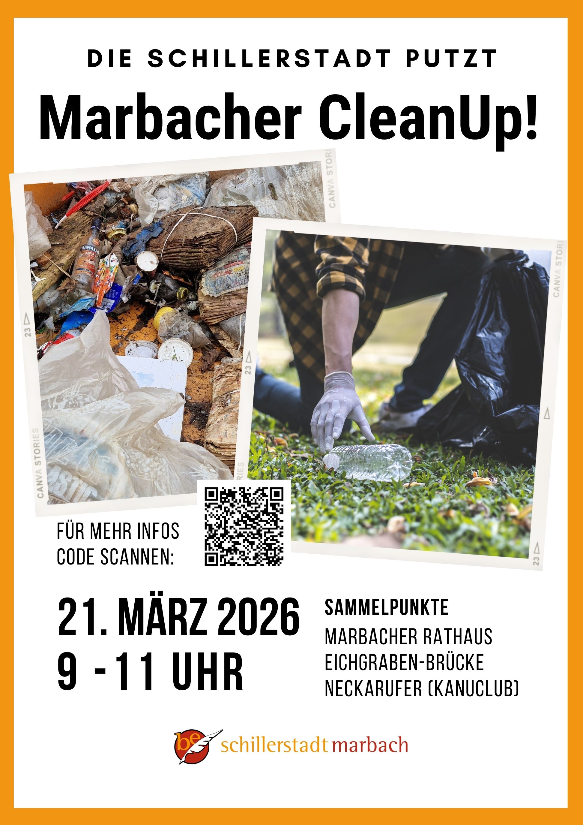 Marbacher CleanUp am 21. März 2026: die Schillerstadt wird an drei Standorten herausgeputzt – Helfer sind willkommen