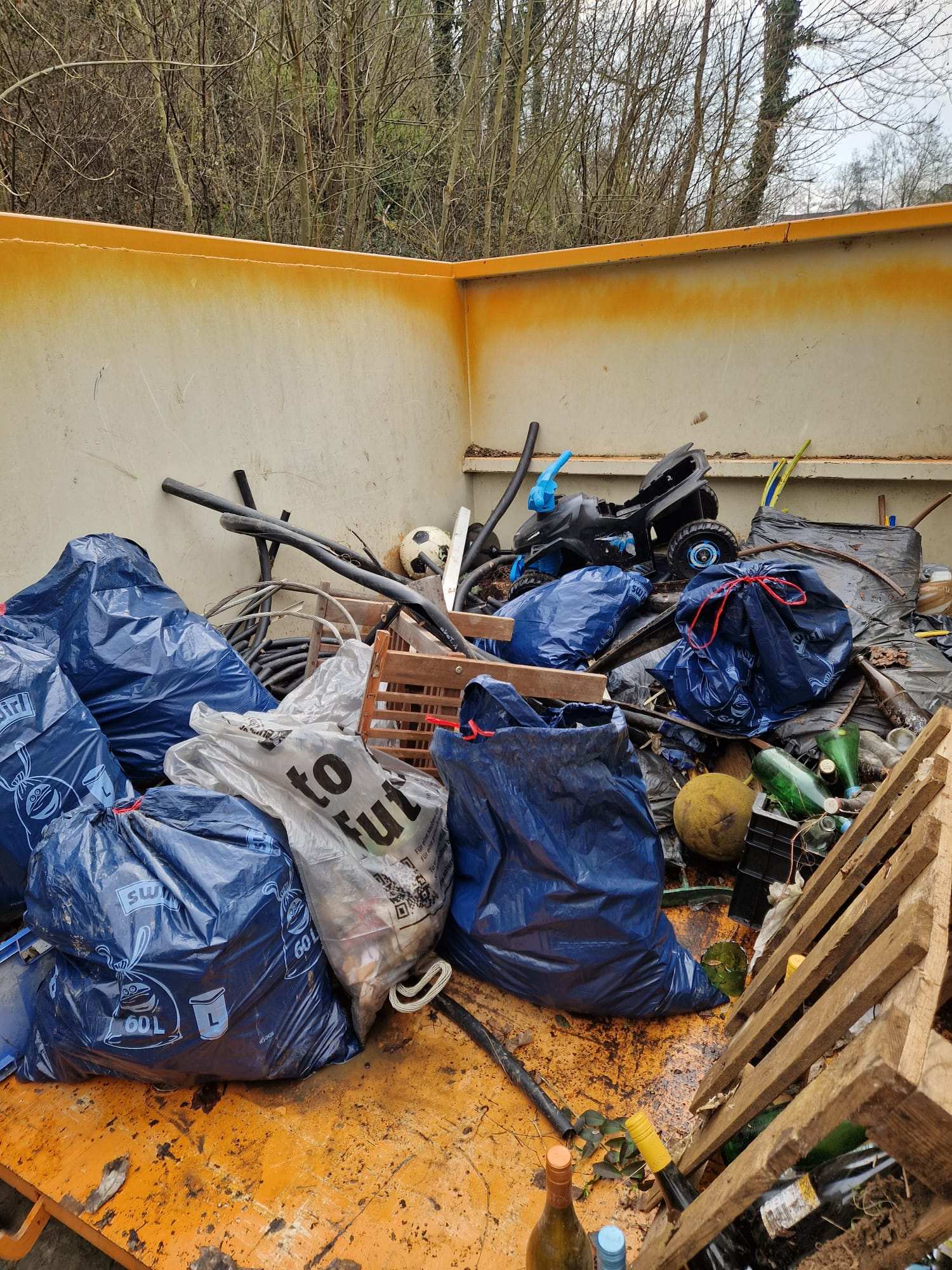 Die Bilanz am Samstag, den 16.03.2024: Beim 2. Marbacher NeckarCleanUp fanden die vielen ehrenamtlichen Helfer unter anderem einen LKW-Reifen, ein altes Nummernschild, zahlreiche Glasflaschen, nicht ausgetragene Werbeblätter, eine halbe Vase, einen Schuh, Alufelgen, Gartenstühle und den Federkern einer Matratze. Ein alter Bauzaun wurde am Hang aus wuchernden Brombeerhecken gezogen. Auch aus dem Neckar wurde allerlei Unrat gefischt. Insgesamt waren es 900 Kilo Müll.