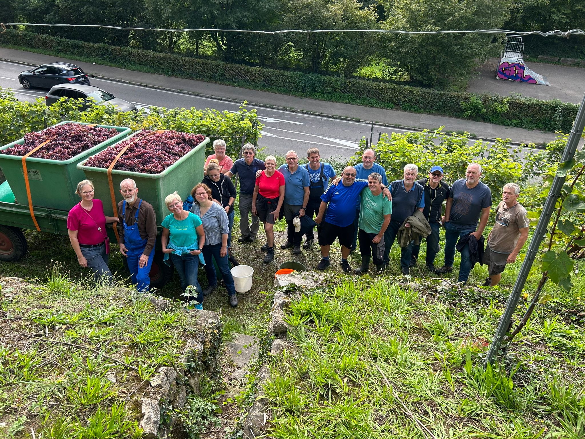 Bei strahlendem Sonnenschein und sommerlichen Temperaturen konnte das Lesegut unter perfekten Bedingungen geerntet werden. Die Mitglieder des Weinbauvereins hatten alle Stadträte und Stadtmitarbeiter bestens auf die Lese vorbereitet, sodass sie sicherstellen konnten, dass keine Trauben mit Essigfäule ins Lesegut gelangten.